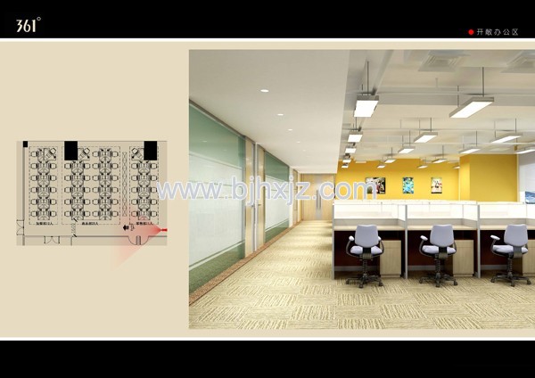 5、考慮了合理的行動路線,以便于人員的走動,辦公家具的選擇充分考慮了辦公及會議的活動性。采用旋轉辦公椅,兩面設計,方便夏冬季節的舒適。辦公桌采用木制材料,呈L形狀。