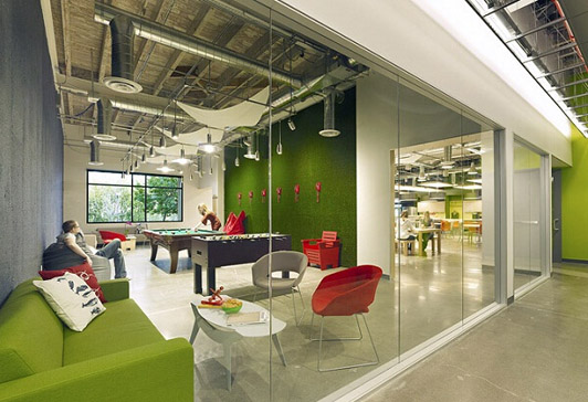 由上圖可以看出設計師把設計化作裝飾符號融入了我們的辦公環境中,引導我們走在正確的道路上,頂級的創意,讓辦公室裝修變得更有意境。由此可證明設計已經變成了一種生活文化,時刻影響著我們。