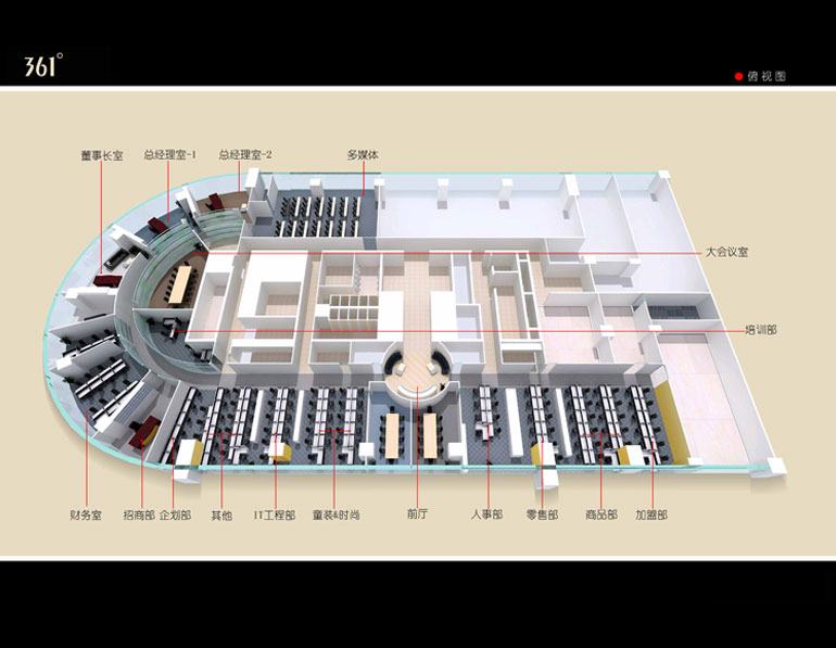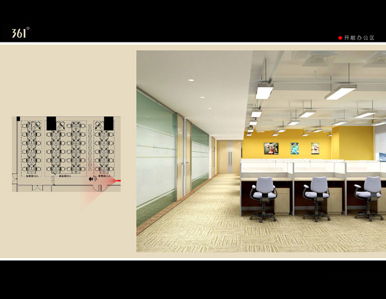 三六一度國際有限公司是一家集品牌、研發、設計、生產、經銷為一體的綜合性體育用品公司。作為中國領先的專業運動品牌,因此對辦公室空間裝修設計的要求也相對較高。