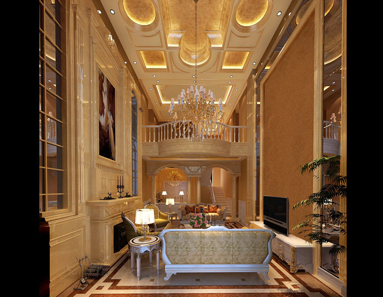 工程說明:整個室內設計局部的雕塑,壁畫,植物和圖案或飾件,與整體(天,地,墻面)結合,體現主人的尊貴與高雅,展現皇室優雅,高貴與浪漫。華麗的裝飾、濃烈的色彩、精美的造型達到雍容華貴的裝飾效果。